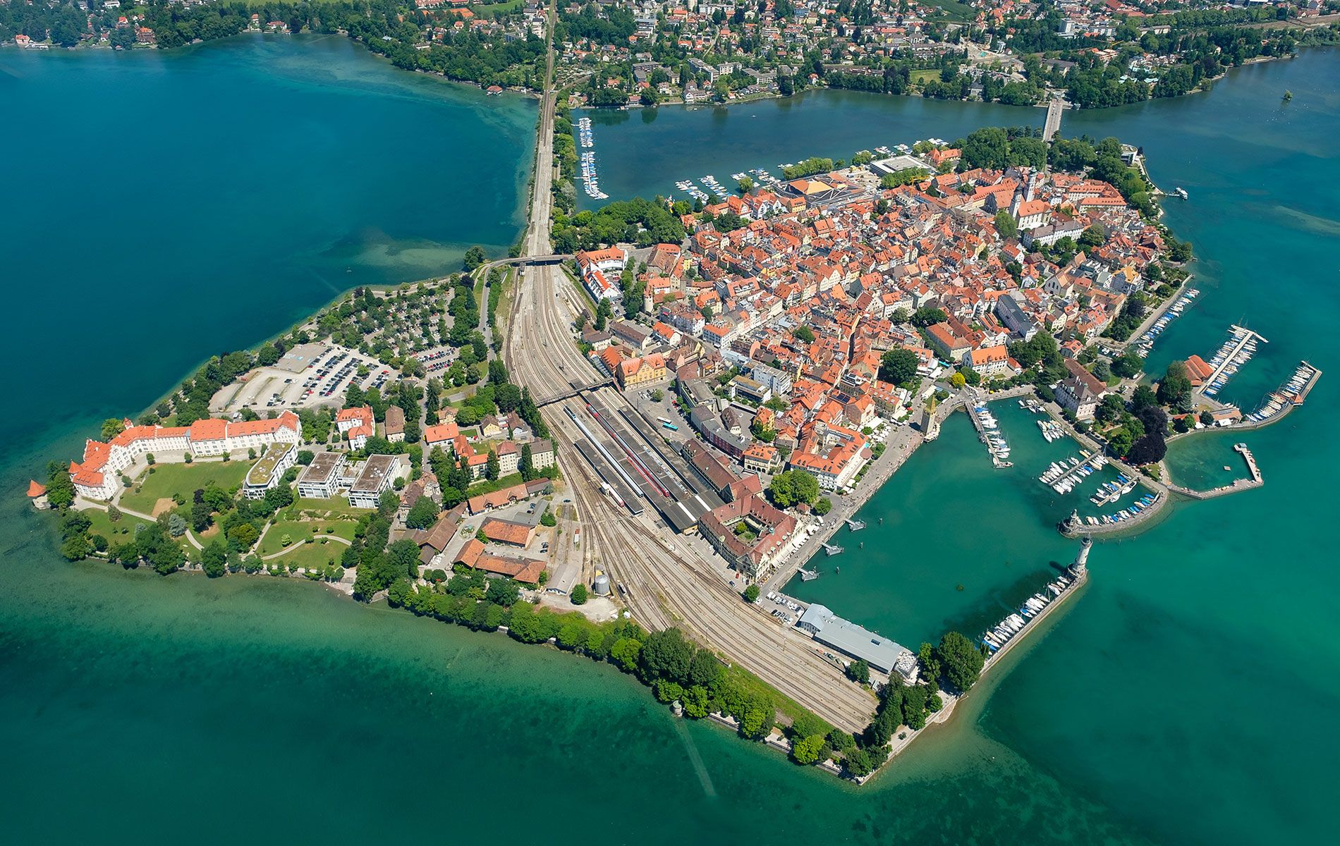 Lindau liegt am östlichen Ufer des Bodensees im Dreiländereck Deutschland-Österreich–Schweiz. Die Stadt gehört zum bayerischen Regierungsbezirk Schwaben und zählt ca. 25.000 Einwohner. Lindau ist auf seine Art einzigartig, denn die historische, unter Denkmalschutz stehende Altstadt befindet sich auf einer Insel und ist durch einen Eisenbahndamm und eine Straßenbrücke mit dem Festland und der „Neustadt“ verbunden. Hier im historischen Zentrum befinden sich die bedeutenden touristischen Attraktionen wie das prächtige Rathaus aus den Anfängen des 15. Jahrhunderts. Die Fußgängerzone mit der Maximilianstraße ist geprägt von herrlichen Bürger- und Handwerkerhäusern aus dem 16. und 17. Jahrhundert mit Laubengängen, Brotlauben, Krangauben, geschnitzten Fenstersäulen, Erkern und Fachwerkfassaden.